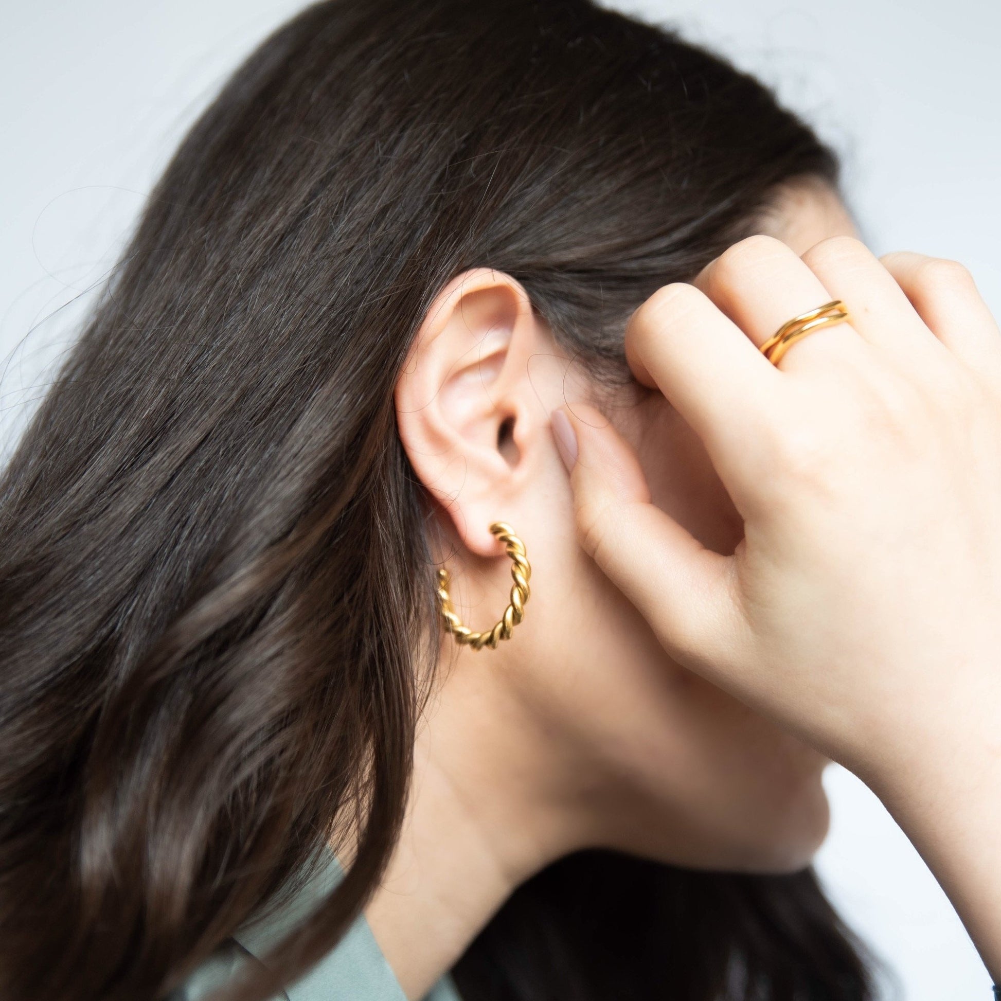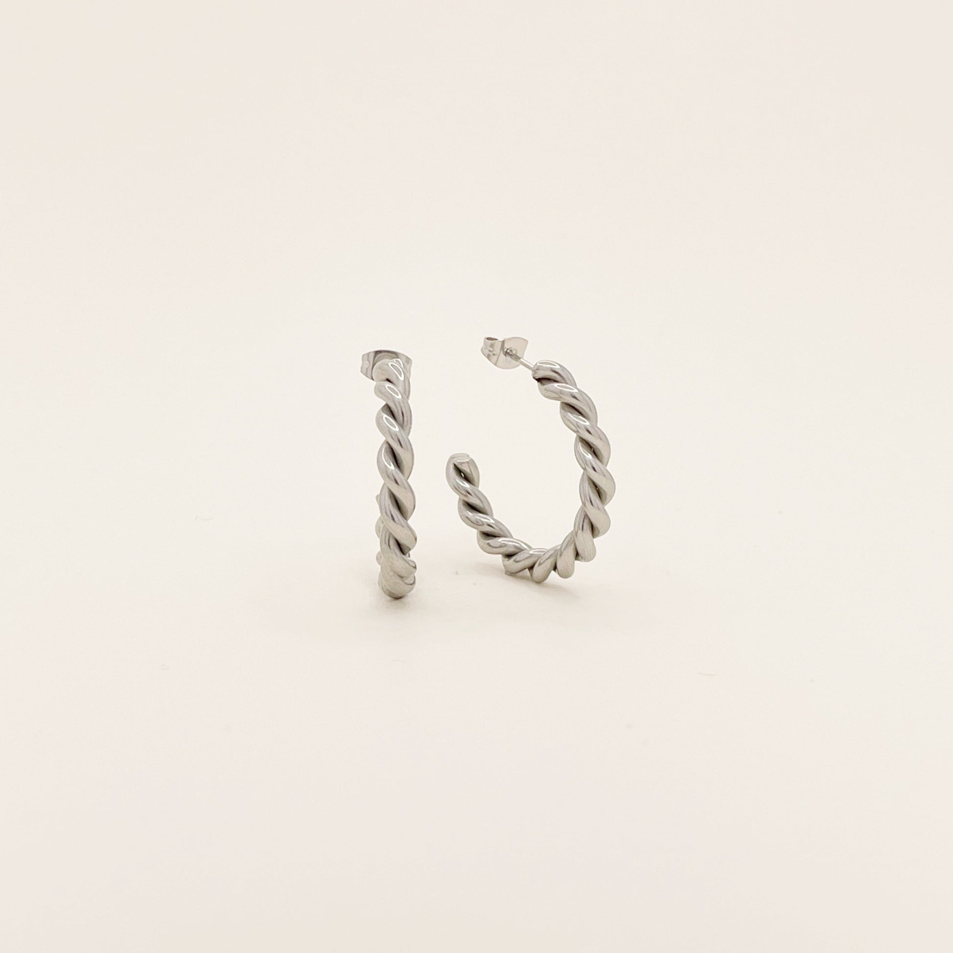 Elevate your style with our Twisted Rope Hoops, a perfect blend of modern elegance and timeless design. Crafted from high-grade stainless steel and plated in 18k gold, these hoops are available in both gold and silver, ensuring a versatile addition to your jewelry collection. Designed for durability and resistance to tarnishing, they are also safe for sensitive skin. Enjoy peace of mind with our 2-year warranty, as we believe your everyday jewelry should shine for the long haul. Diameter: 30mm. Please note that all earrings are final sale for hygiene reasons.